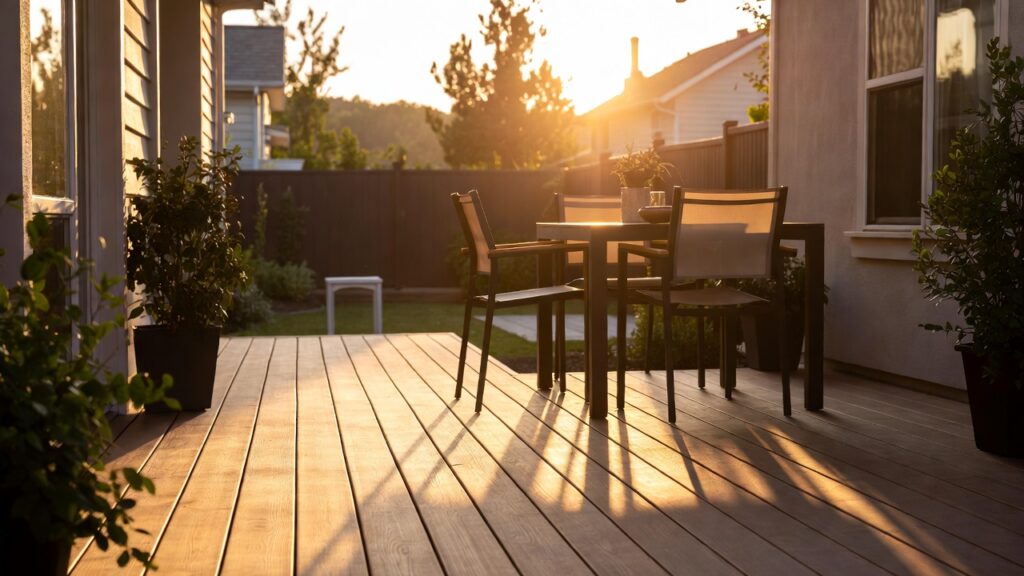 • Composite Decking: The modern choice. Made from a blend of wood fibers and plastic, it is incredibly durable. It won’t rot, warp, or fade, and it never needs painting or staining. It is the perfect “fit and forget” solution for busy homeowners.